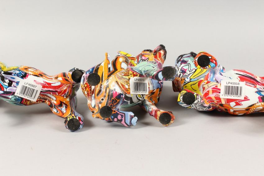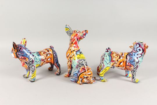 THREE VARIOUS GRAFFITI DOGS.