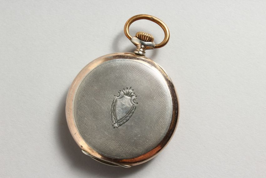 A LONGINES ENGINE TURNED SILVER POCKET WATCH.