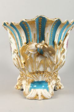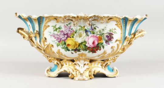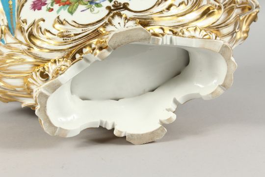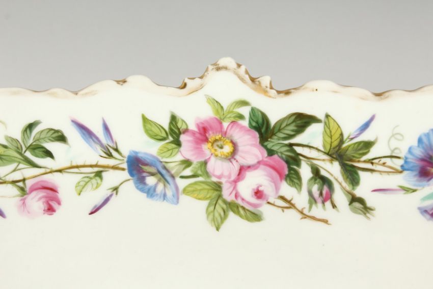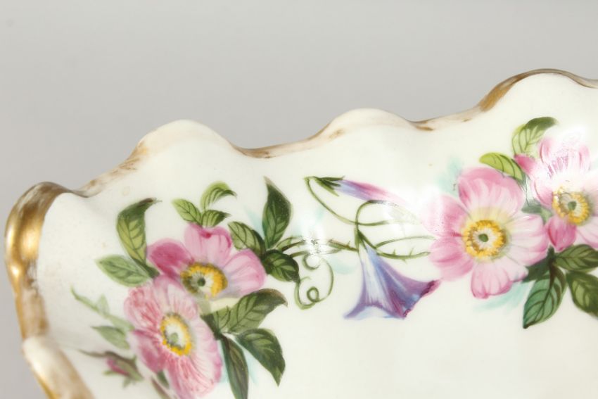 A LARGE LATE 19TH CENTURY CONTINENTAL OVAL BASKET, edged in gilt and painted with flowers.