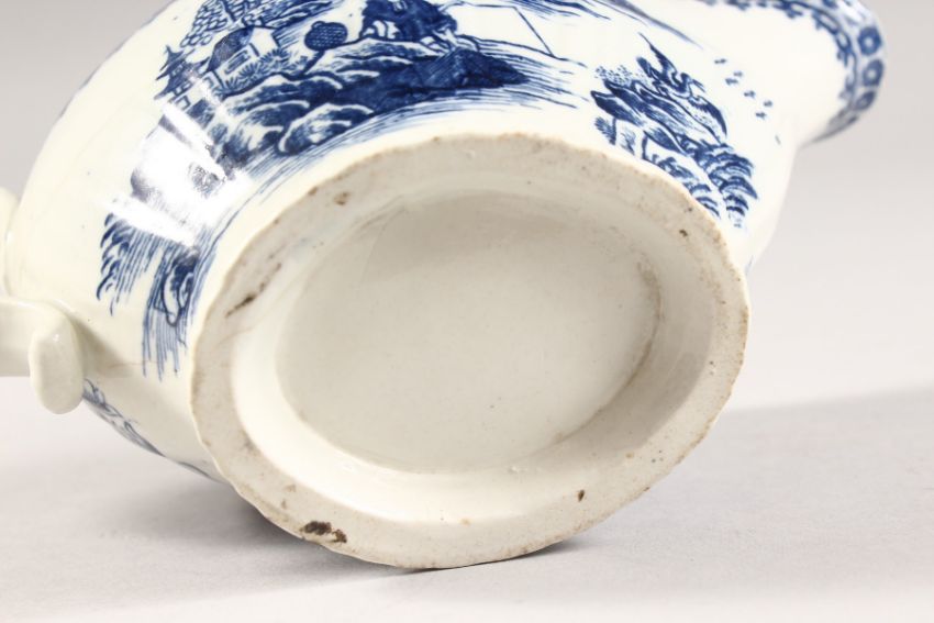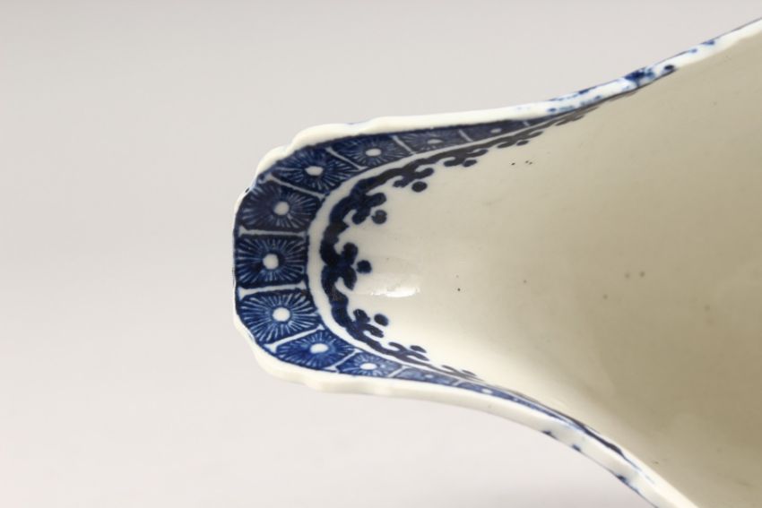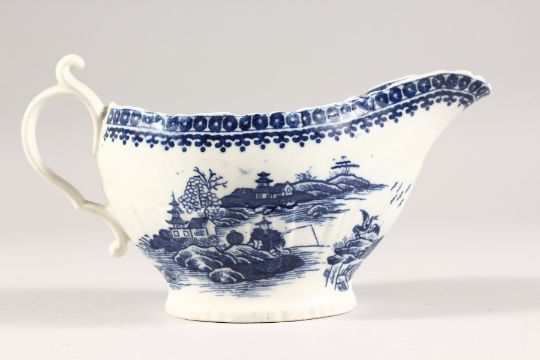 A WORCESTER BLUE AND WHITE SAUCEBOAT, Fisherman and Cormorant.