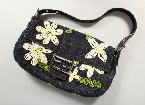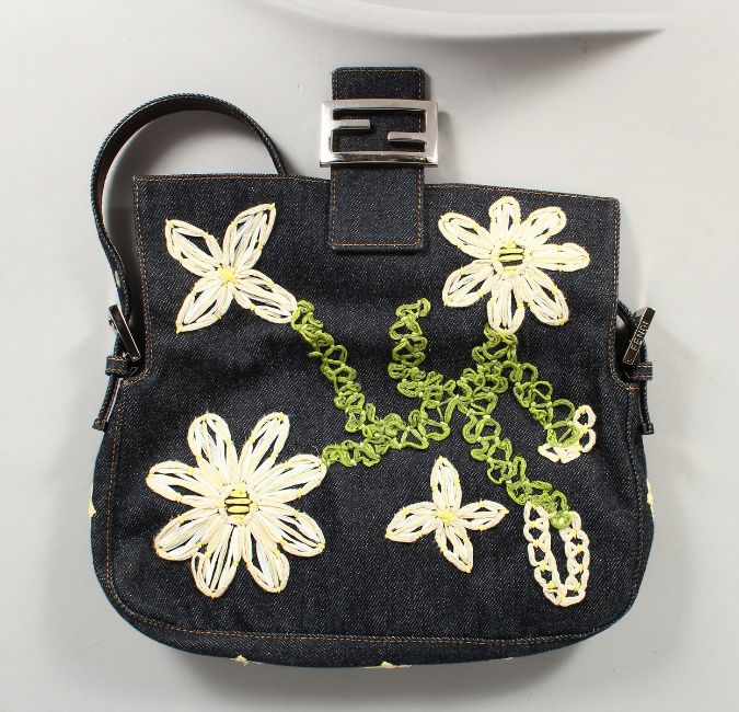 A FENDI FLORAL DENIM BAG in a Fendi bag.