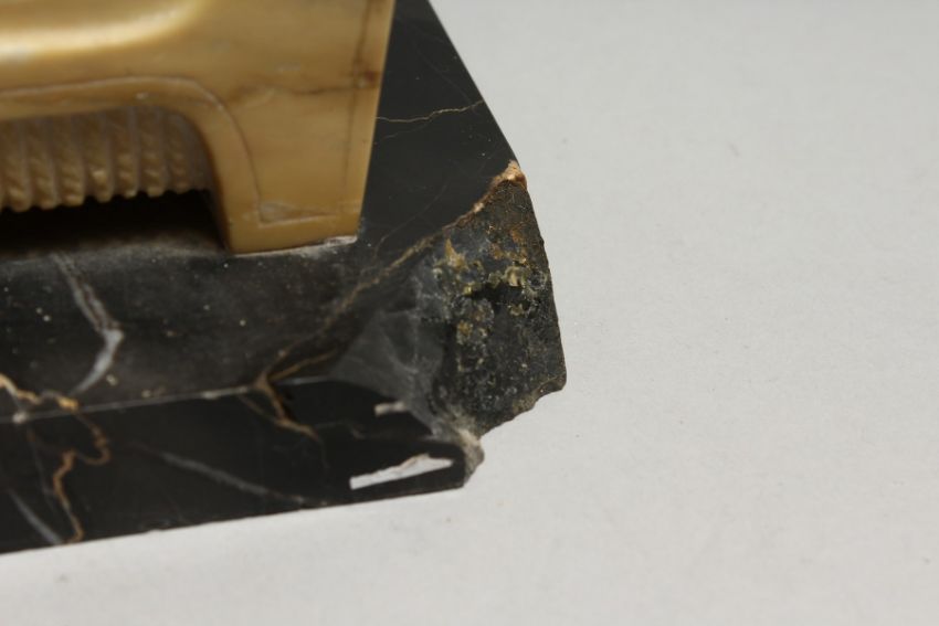 5/ Damage. The Auctioneer will not be liable for damage to glass or picture frames, nor cleavage of stones (jewellery). Any other damage claim shall be settled at the Auctioneer's discretion provided that the Vendor has availed himself/herself of the Auctioneer's insurance.