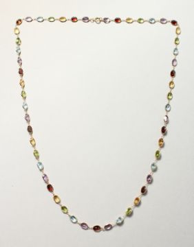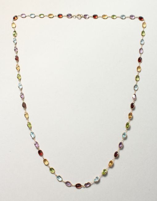 A GOOD 18CT YELLOW GOLD GEM SET NECKLACE.