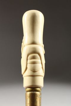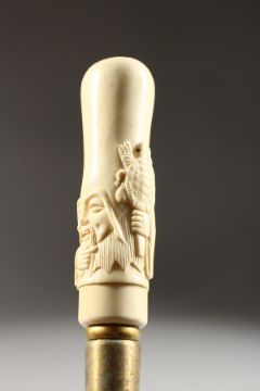 A CARVED BONE HANDLED WALKING STICK, CHINESE HEAD.