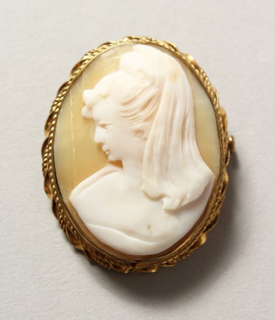 A VICTORIAN OVAL CAMEO BROOCH.