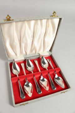 A CASED SET OF SIX GRAPEFRUIT SPOONS.
