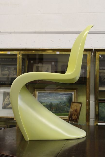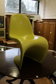 In the manner of Verner Panton, a moulded fibreglass chair.