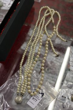 Pearl necklaces.