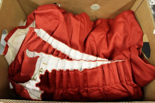 A large crimson coloured door curtain.