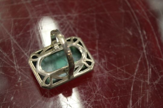 A silver ring inset with hardstone.