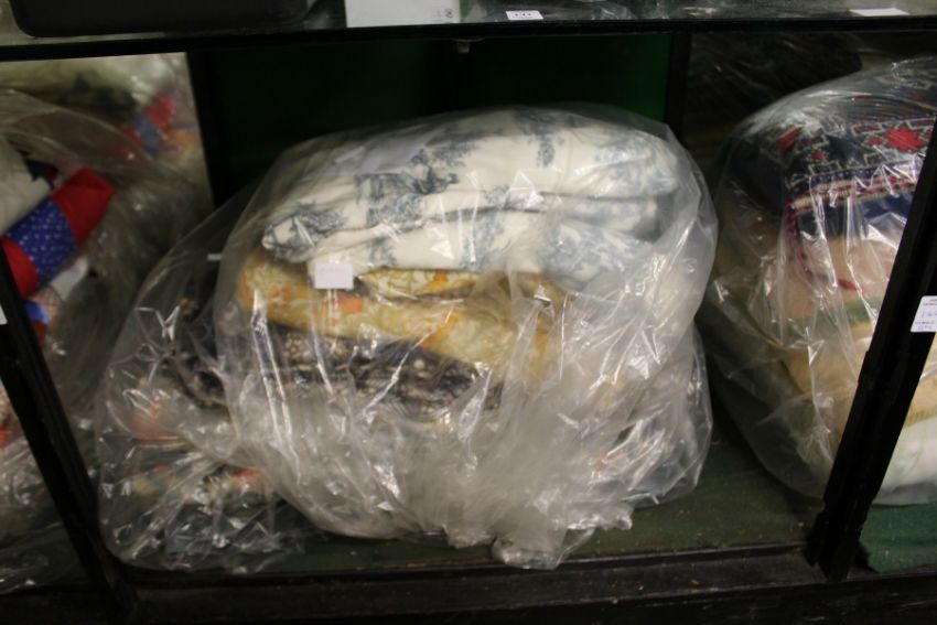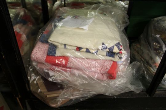 A good quantity of textiles to include patchwork quilts, cushions etc.