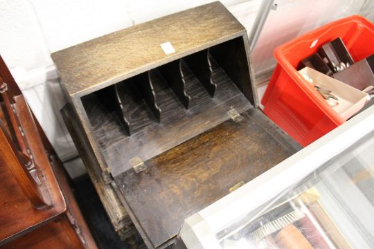 A small oak bureau on turned legs.