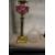 A good brass Corinthian column oil lamp with painted porcelain reservoir.
