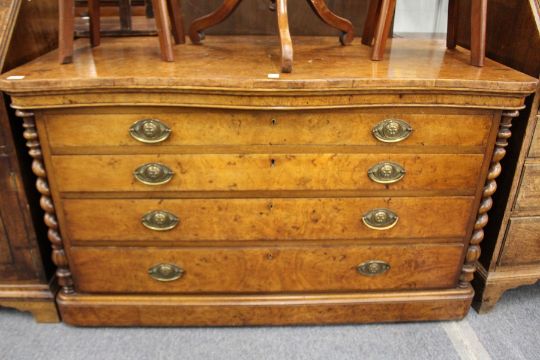 A good continental burr walnut four drawer chest with barley twist columns to each end.