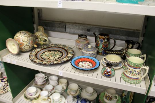 A quantity of Swiss Thoune decorative pottery items to include a ewer, various mugs, plates etc.