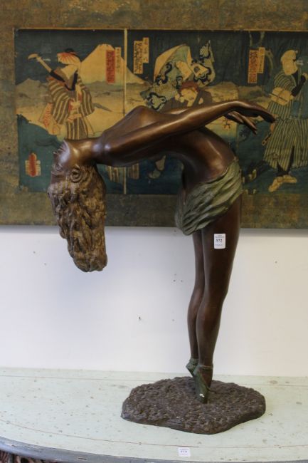 A bronze coloured resin sculpture of a female diver.