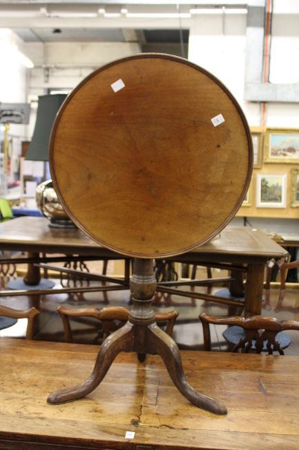 A mahogany circular tilt top tripod table.
