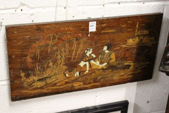 An Indian inlaid wood panel.