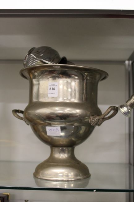 A wine cooler and other plated wares.