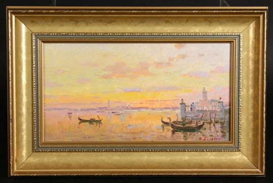 Vladimir Belsky (b.1949) Russian, 'Venetian Sunset', signed oil on board, 7.5" x 13.5", 19x35cm.