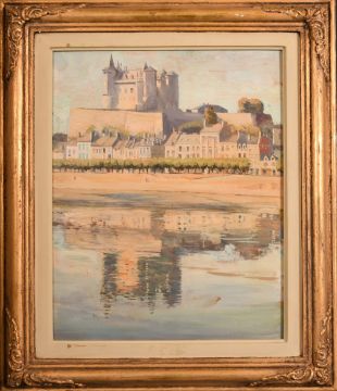Agatha Shore (1878-1950) British, 'Chateau de Saumur', oil on panel, signed and inscribed verso and dated '1923', 16" x 13".