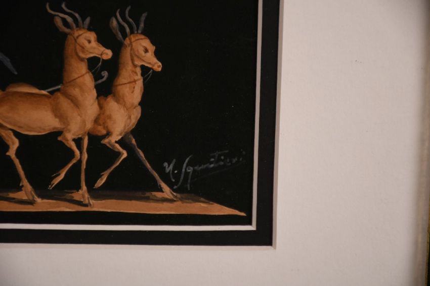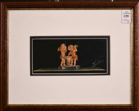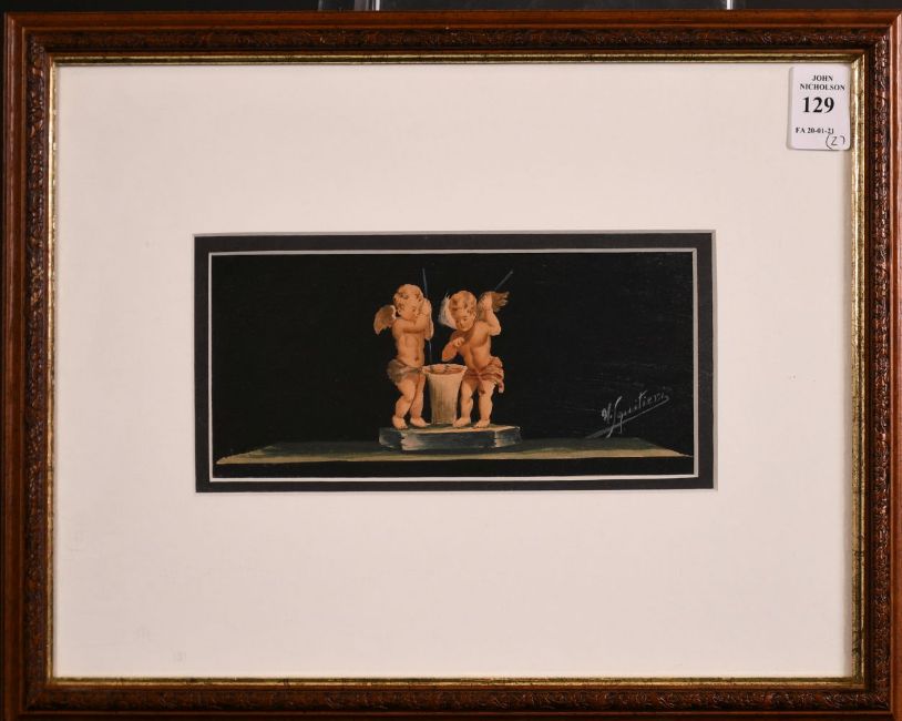 N. Squitieri (19th Century) Italian School, A pair of scenes of putti, gouache, signed, one 3.25" x 7" and the other 4" x 7".