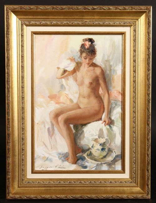 Konstantin Razumov (b.1974) Russian, 'Nude', signed oil on board 10.5" x 16", 41x27cm.