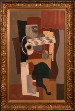 Continental school circa 1940, abstract composition with a guitar and table, oil on board, 31" x 18".
