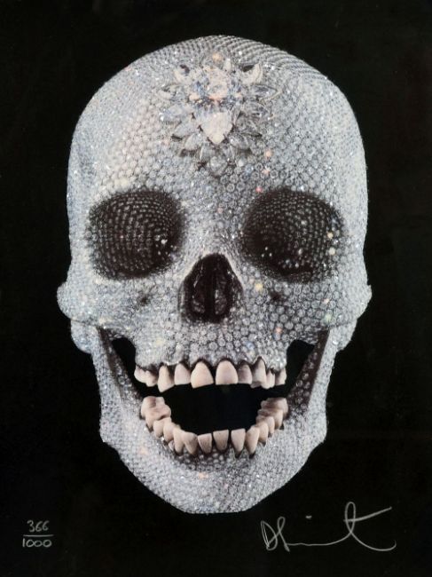 Damien Hirst, (B. 1965), "For the Love of God" Screenprint in colours with diamond dust on wove paper, signed and numbered '366/1000',12.5" x 9.25", along with a book, "Damien Hirst - for the Love of God - the Making of the Diamond Skull".