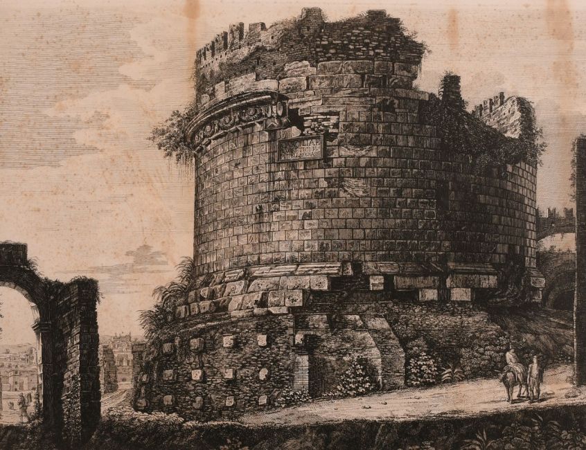 Luigi Rossini (1790-1857) Italian, 'Veduta del Gran Sepolcro di Cecilia Metella', engraving circa 1822, 19" x 24.5".