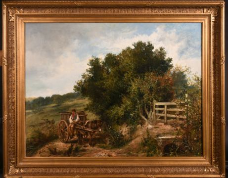 Thomas Kent Pelham (19th century) British, figure on a horse and cart in a country landscape, oil on canvas, signed, 28" x 36".
