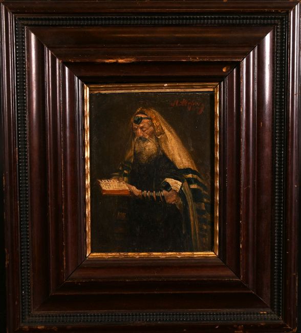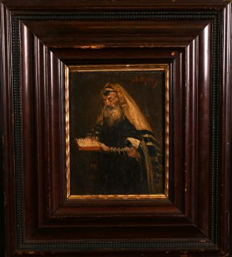 19th century school, a study of a rabbi reading a manuscript, oil on panel, indistinctly signed and dated, 5.75" x 5".