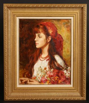 Yossif Tali (b.1960) Russian, 'Young Girl With A Red Necklace', signed oil on canvas, 16" x 13" 41x33cm.
