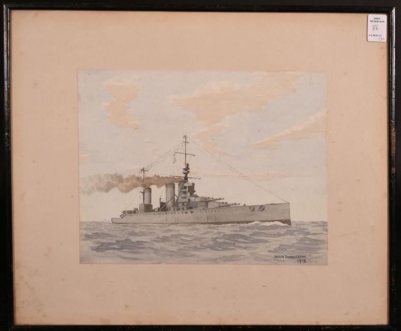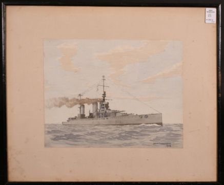 Wood Harrington, 20th century British school, a collection of three maritime scenes of first world war battleships, watercolour, signed and dated '1918', all 9" x 11". (3)