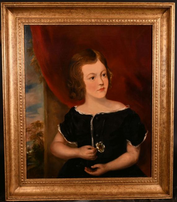 19th century English school, A portrait of a girl holding a flower, oil on canvas, 24" x 20".