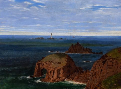 J. Evans (Early 20th century school) British, a scene of Land's End, oil on canvas, signed with initials and dated '1905', 9" x 12".