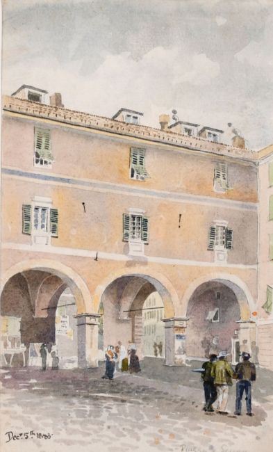 19th century continental school, figures in a piazza, watercolour, inscribed and dated 'Dec 5th 1883', 9" x 5.5".