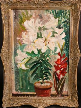 Robert Dumont-Smith (1908-1994) British. A Still Life Study of Flowers in a Terracotta Pot, Oil on Board. 18" x 12".