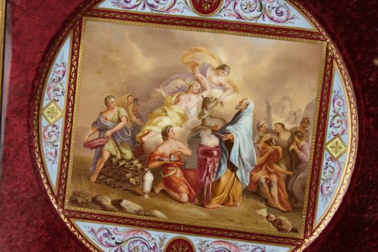A LARGE 19TH CENTURY VIENNA CIRCULAR PLAQUE, painted with a classical scene. Inscribe on reverse.