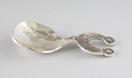 A 1973 IRISH DUBLIN SILVER CADDY SPOON.