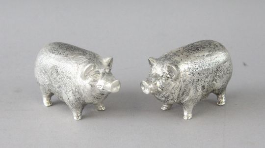 A PAIR OF CAST 800 PIG SALT AND PEPPERS.