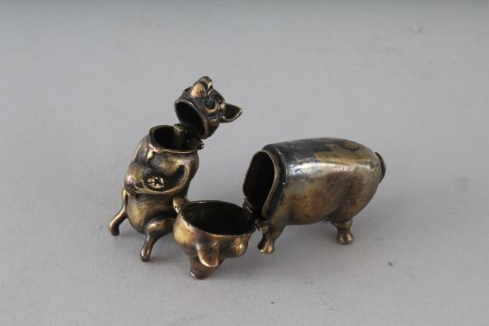 TWO CAST BRASS PIG VESTAS.
