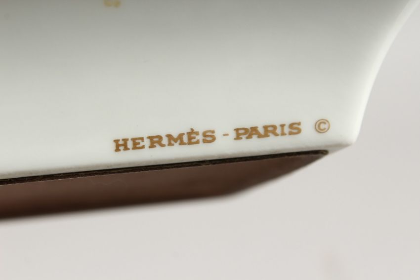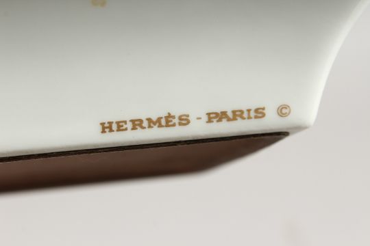 A HERMES, PARIS PORCELAIN ASHTRAY WITH A YACHT