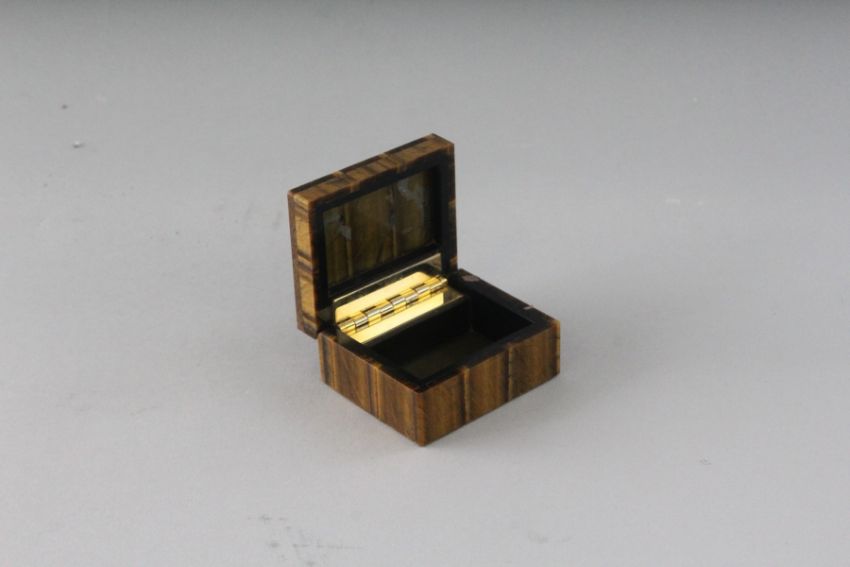 A TIGER'S EYE BOX AND LID.