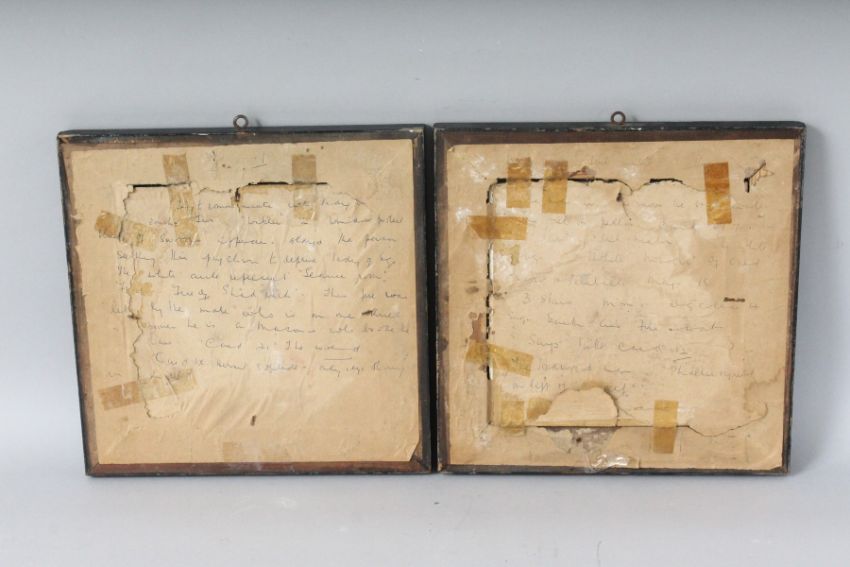 A PAIR OF FRAMED TILES "THE TALISMAN" and "THE ANTIQUARY" by Moyr Smith.
