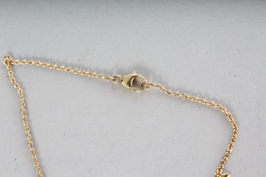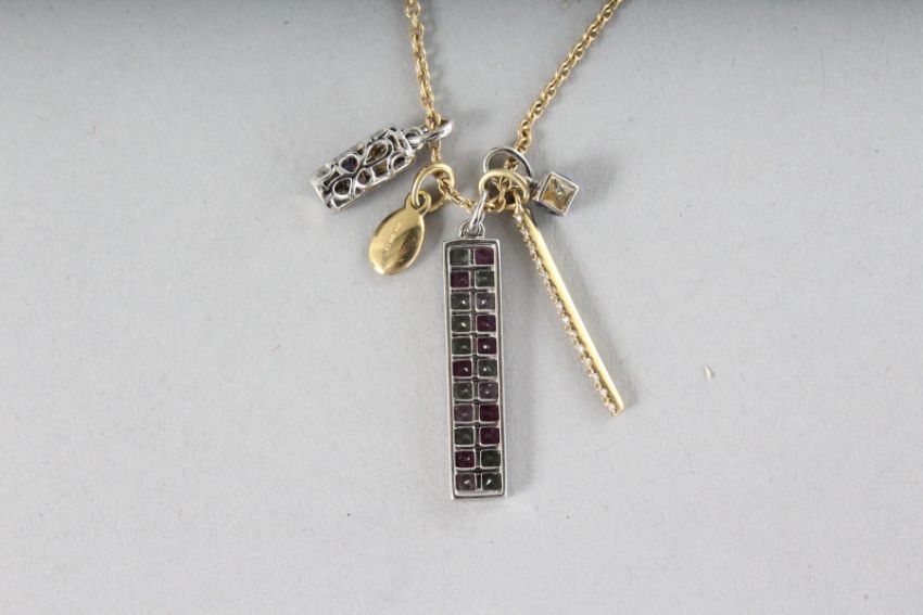 AN 18CT YELLOW GOLD, SAPPHIRE AND DIAMOND CHARM PENDANT.