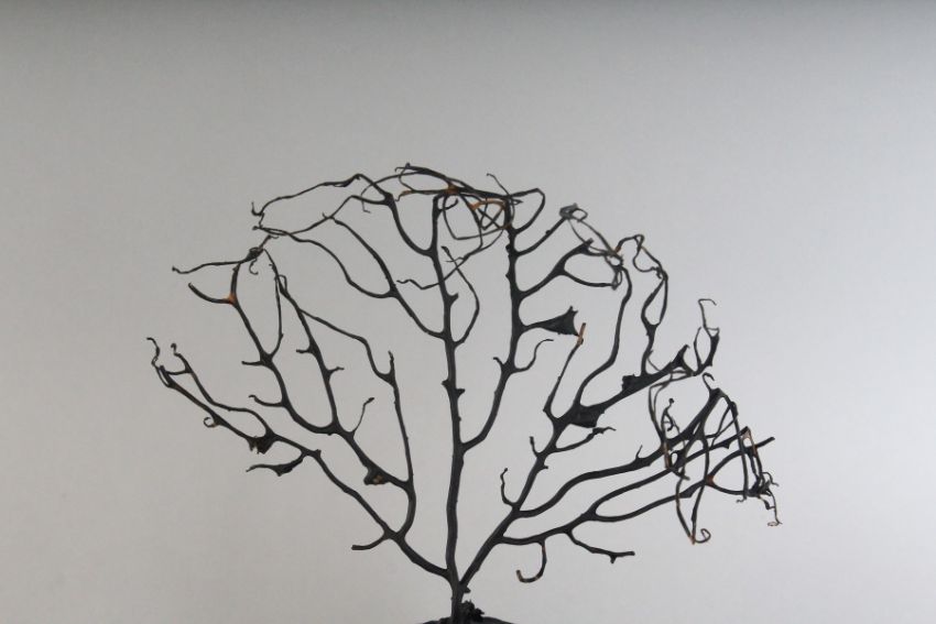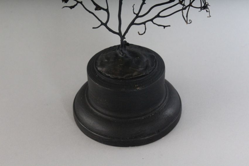 A BLACK CORAL SPECIMEN on a circular wooden base.