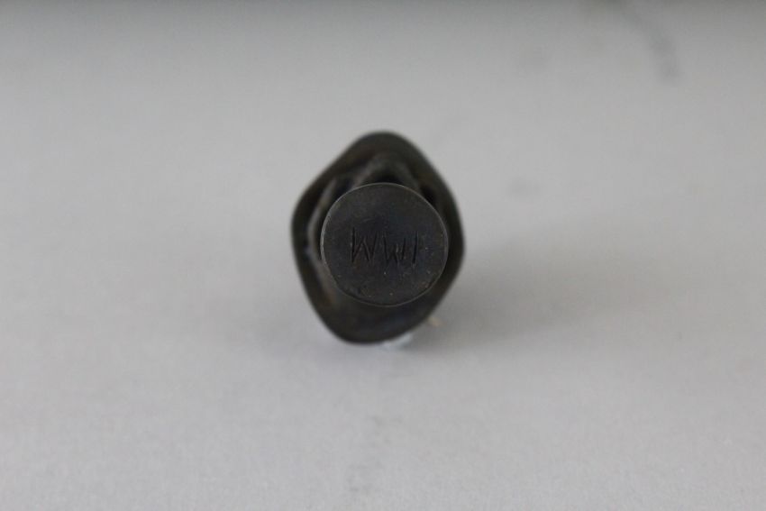 A SMALL BRONZE SKULL PIPE TAMPER.