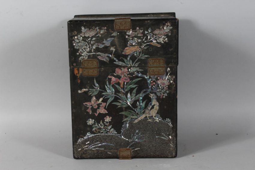 A CHINESE BLACK LACQUER AND MOTHER-OF-PEARL BOX.