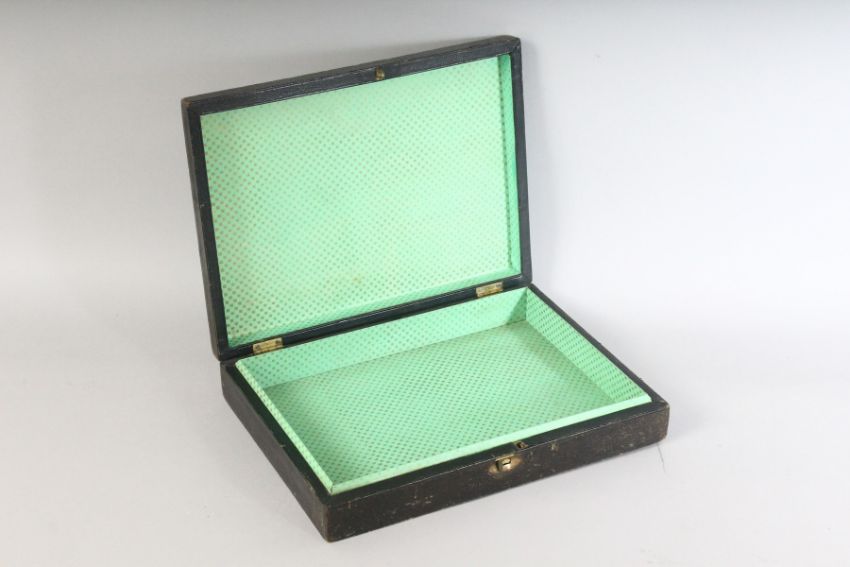 A LEATHER LETTER BOX, with gilt monogram and HER MAJESTY ROYAL COAT OF ARMS.